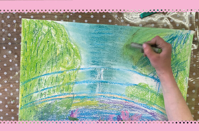Pastel sec des Nymphéas inspiré de Monet.