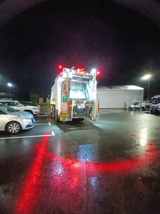 La sécurité des rippeurs est une priorité, notamment lors des collectes nocturnes où la visibilité est réduite. C'est pourquoi, COVED a équipé plusieurs de ses bennes d'un dispositif laser novateur.