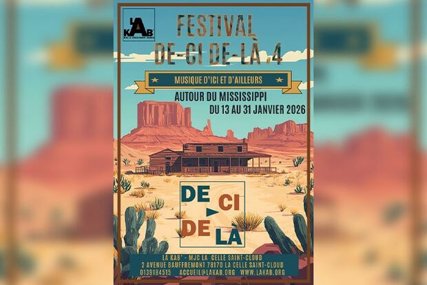 Du 13 au 31 janvier 2026, le festival De ci–De là de La Celle Saint-Cloud revient pour sa 4ème édition consacrée aux musiques traditionnelles d’ici et d’ailleurs. Ce voyage musical organisé par la Kab’-Mjc conduit le public du Bayou de Louisiane au delta du Mississippi, à la découverte des univers cajun, blues et country, reflets du métissage des cultures créoles, afro-américaines et européennes.