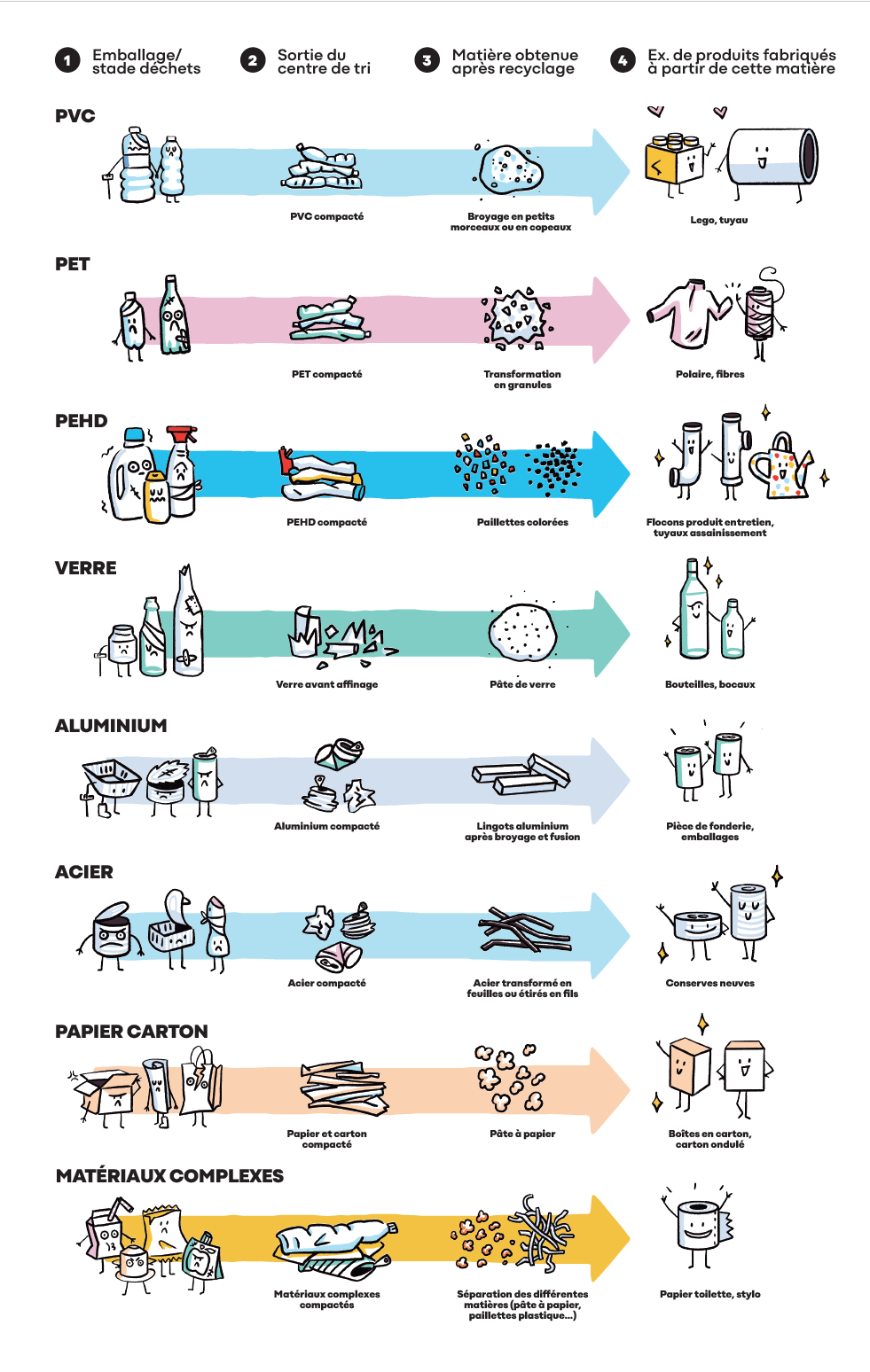 Chaque matériau suit un processus précis :