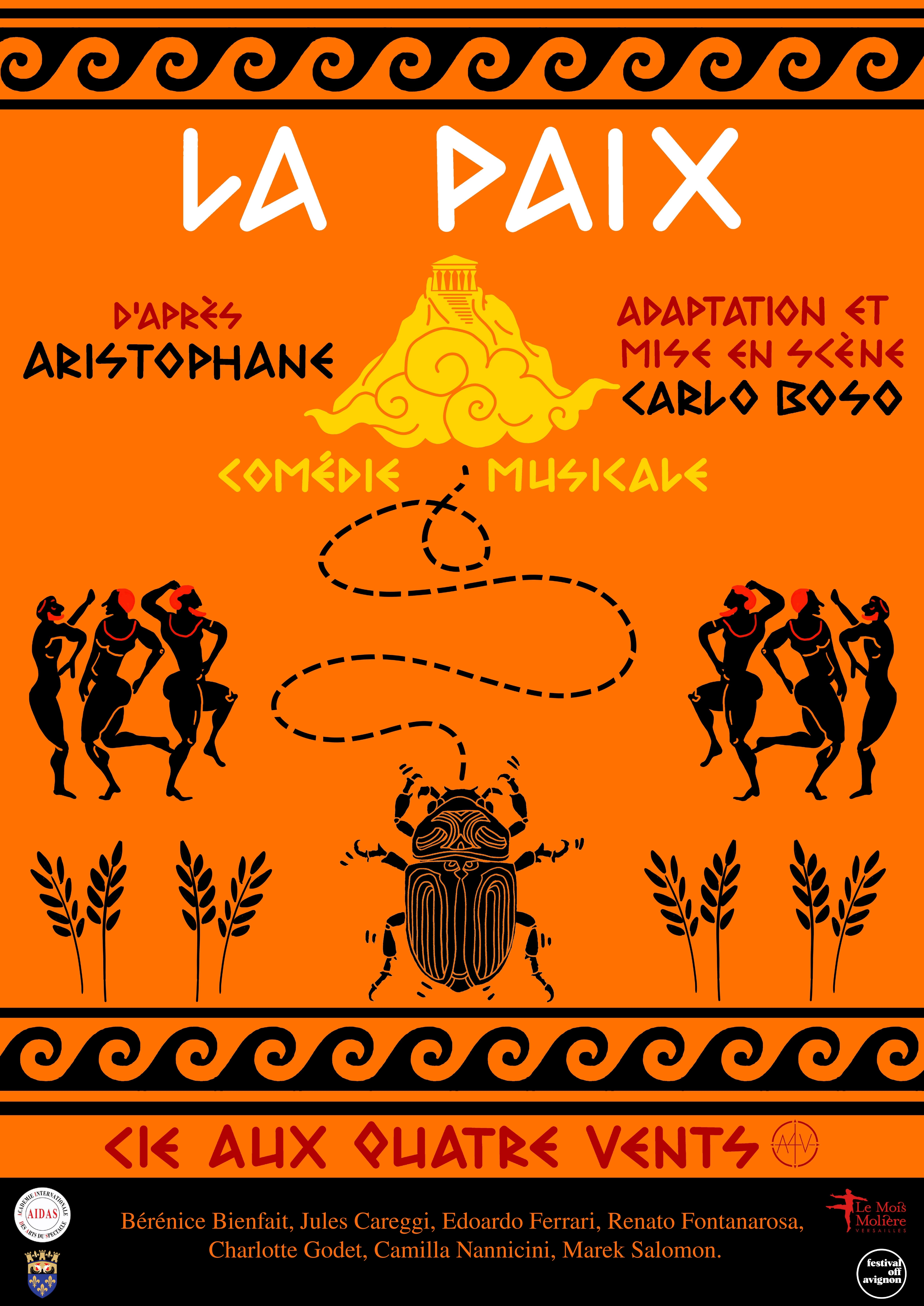 Écrite par Aristophane en l’an 421 avant J.-C., cette comédie musicale est une vision satirique d’une société gouvernée par les intérêts de quelques divinités peu soucieuses du bien-être de l’humanité.