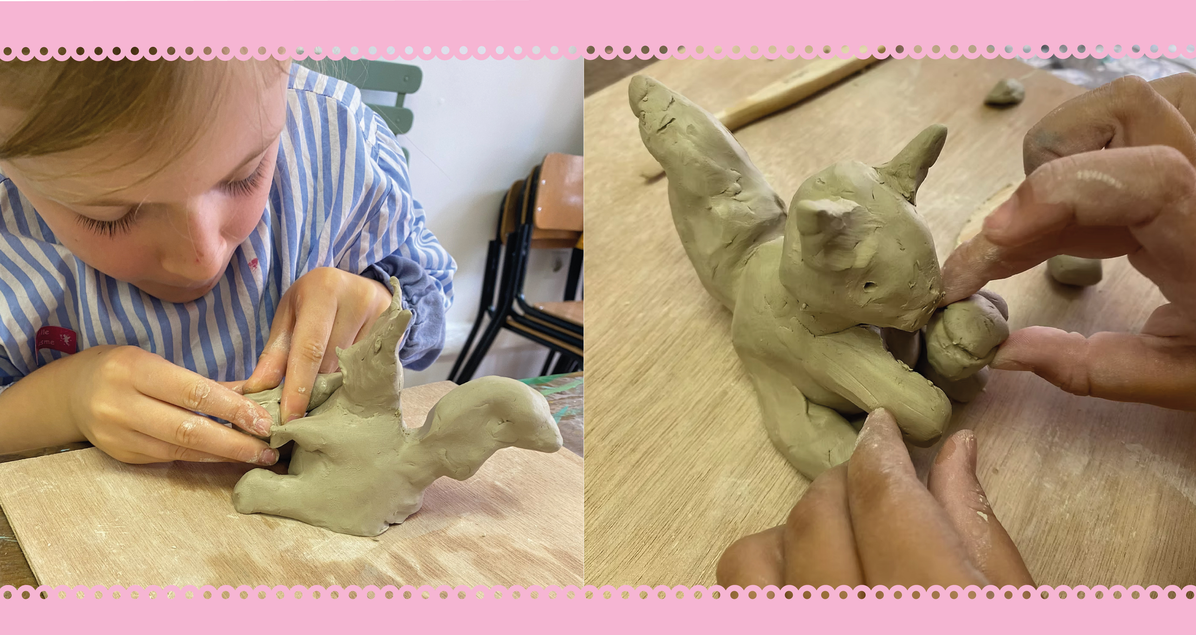 A partir d'une boule d'argile modeler ensemble les différentes parties qui compose un écureuil. Le plaisir du toucher de l'argile et de voir un animal prendre forme sous vos doigts !