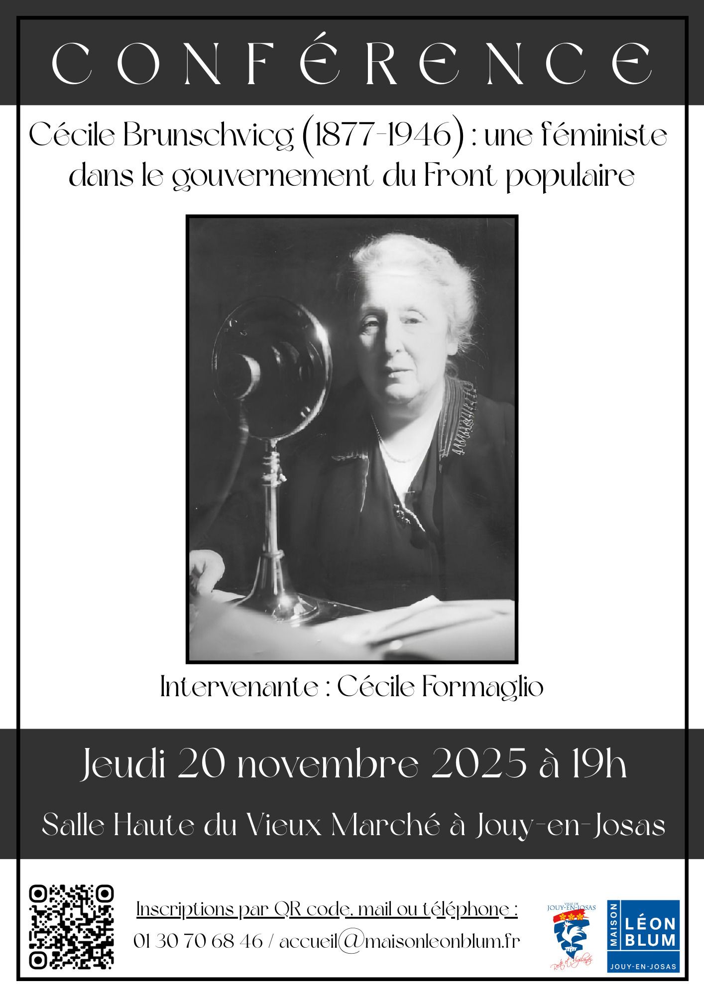 Vous pourrez échanger avec l’intervenante de cette conférence, Cécile Formaglio, docteure en histoire et spécialiste de Cécile Brunschvicg, aujourd’hui conservatrice des bibliothèques. En 2014, elle publie « Féministe d’abord » : Cécile Brunschvicg (1877-1946) qui aborde la vie de cette dernière ainsi que ses nombreux engagements par l’angle du féminisme.