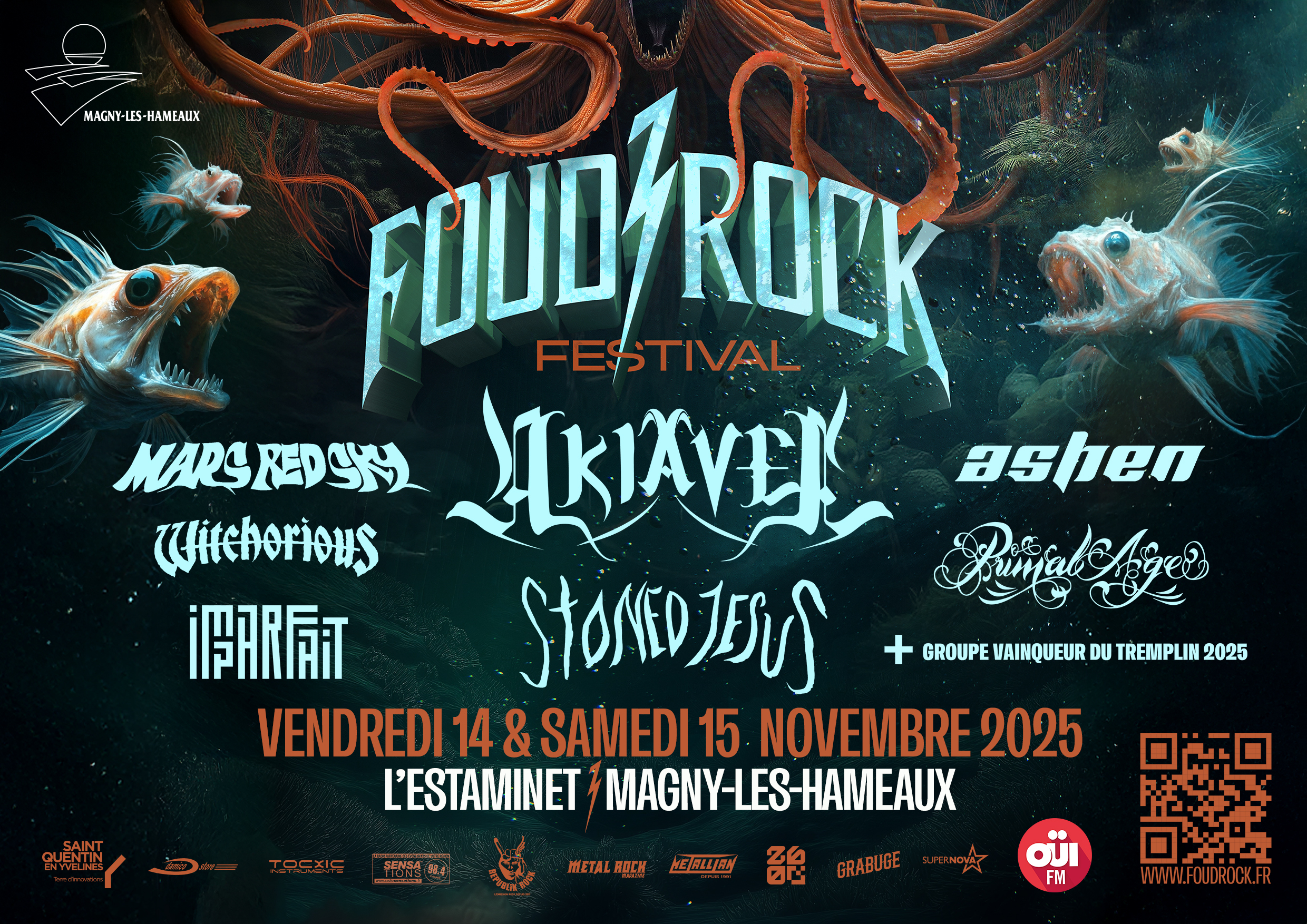 C’est 2 jours de festival que propose Foud’Rock ! Vendredi 14 novembre 2025 : WITCHORIOUS, MARS RED SKY, STONED JESUS Samedi 15 novembre 2025 : MELINOË, IMPARFAIT, PRIMAL AGE, ASHEN, AKIAVEL