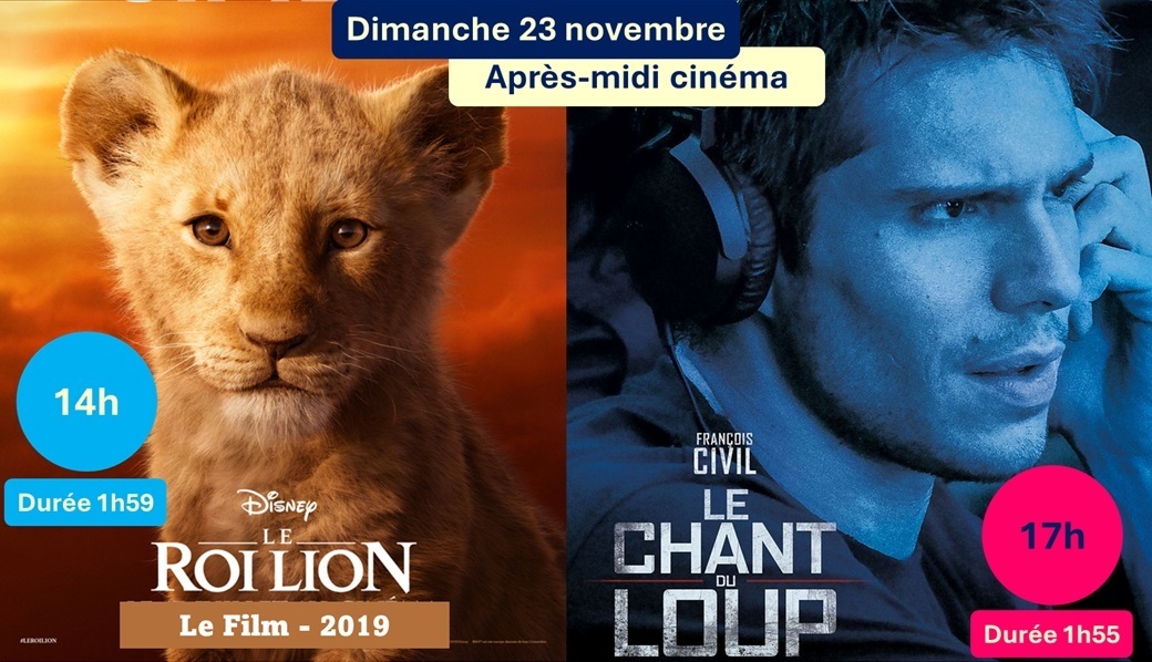 - à 14h, un film familial, Le Roi Lion – Le film (dans sa version 2019 et non le dessin animé de 1994)