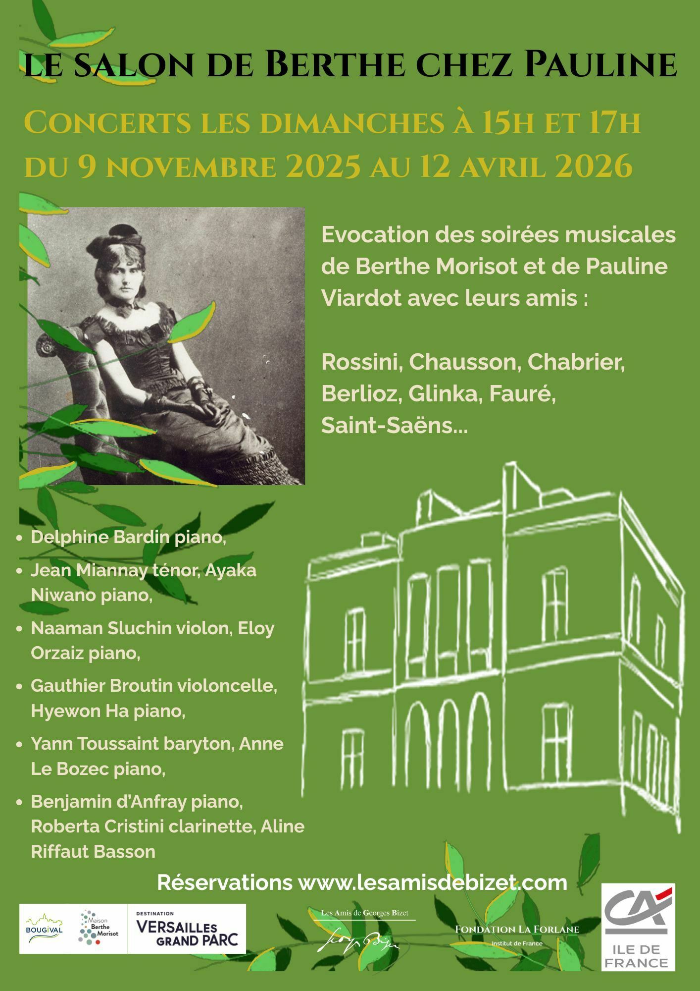 Ce cycle de concerts « Le salon de Berthe chez Pauline », vous invite un dimanche par mois à vivre la rencontre possible des cercles artistiques de Berthe et Pauline dans la villa néo-palladienne de Bougival, occupée jadis par les Viardot.