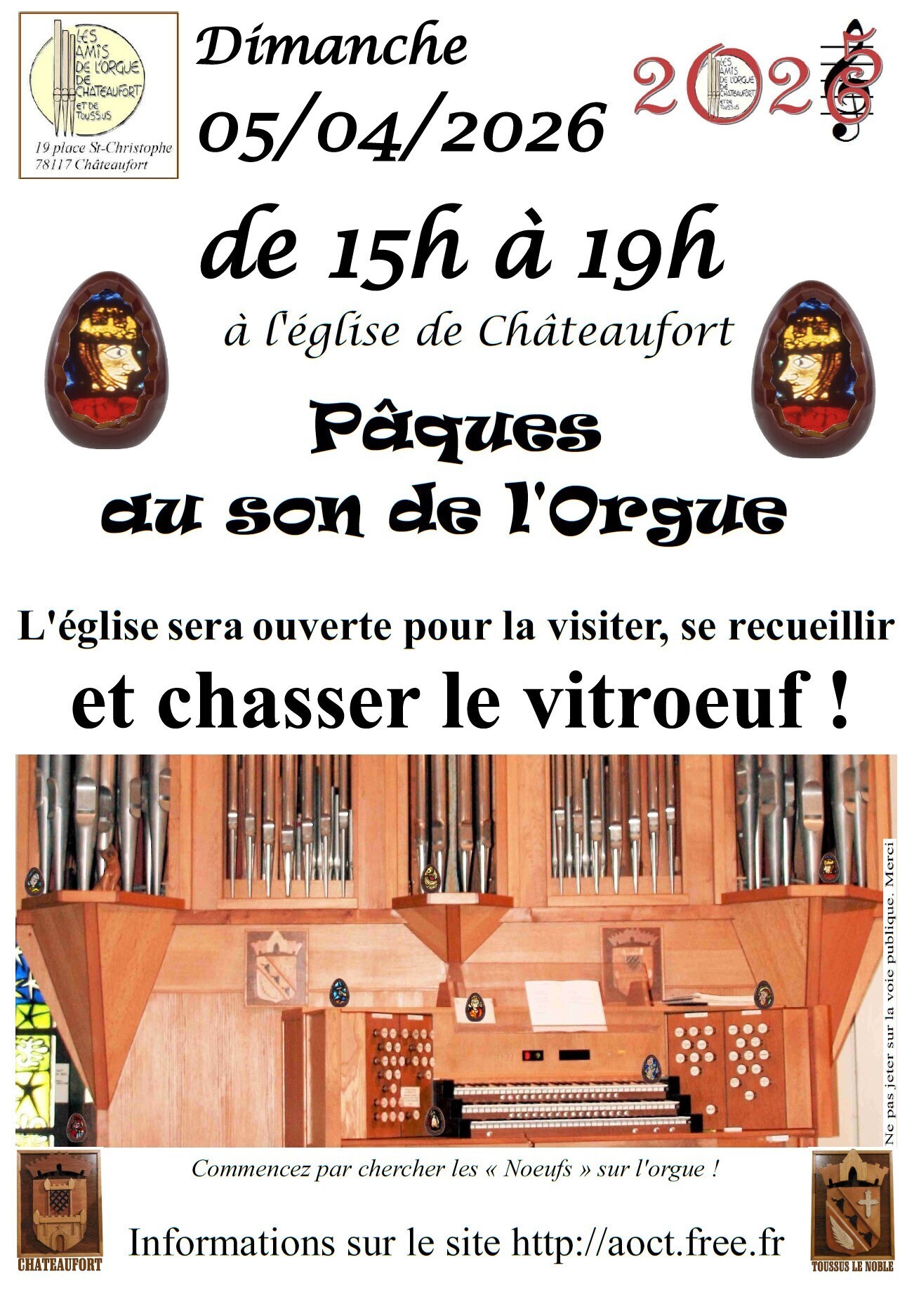 Les Amis de l'Orgue de Châteaufort et de Toussus-le-Noble vous propose une nouvelle animation le dimanche 5 avril : Pâques au Son de l’Orgue et chasse au « Vitroeuf » !