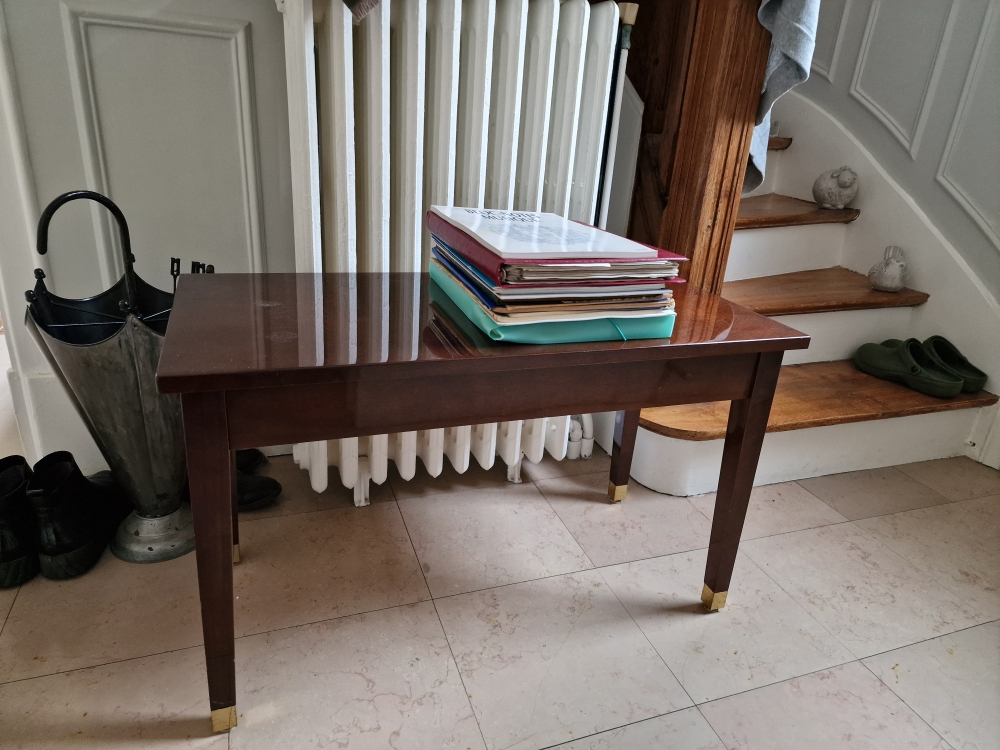banc de piano s'ouvrant afin de pouvoir y ranger les partitions. Je donne aussi un bloc notes musique. A venir chercher sur place