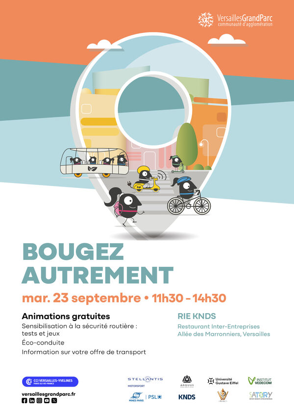 Dans le cadre de la 24e édition de la Semaine européenne de la mobilité, les services développement économique et déplacements de Versailles Grand Parc ont organisé l’édition 2025 de « Bougez autrement » sur le plateau de Satory en partenariat et avec le concours de la CCI78 et de l'entreprise KNDS. Cette année encore, il était question de sensibilisation au risque routier mais aussi de valorisation des nouveaux modes de déplacements (VLIs notamment).